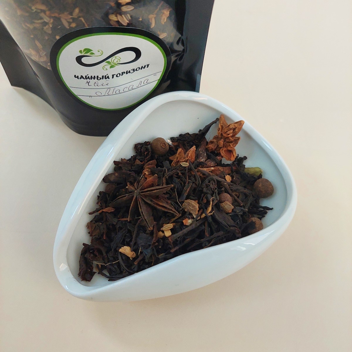 Черный индийский чай Ассам, корица, имбирь, гвоздика, бадьян, кардамон, горошинки душистого и черного перца, фенхель