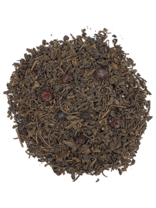 Четырехлетний ароматизированный шу пуэр с цельными ягодами вишни.