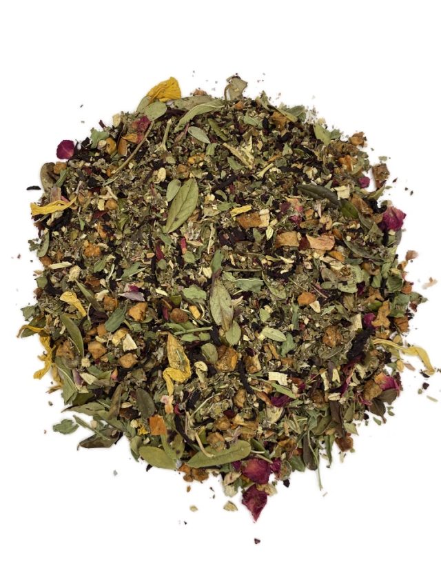 Это ароматный напиток, который великолепно утоляет жажду, надолго оставляет ощущение свежести. При этом чай очень полезен из за того, что в этом чайном напитке встречаются  Ройбуш, Каркаде и мята.